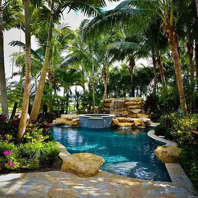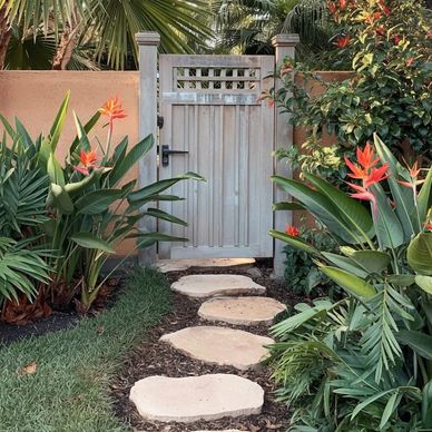 We can create an enclosed, canopy-feel to your yard with large palms planted along the footpaths.
